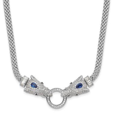 Sterling Silver Rhodium-plated Blue and Clear CZ Elephant Head Necklace