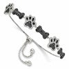 Sterling Silver Rhodium-plated CZ Paw Print & Dog Bone Adj Bracelet
