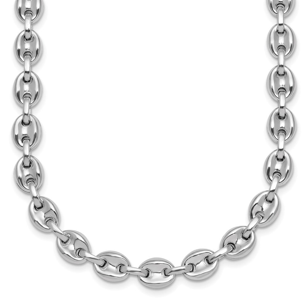 Sterling Silver Rhodium-plated Polished 7mm Puffed Mariner Link 18 inch Necklace