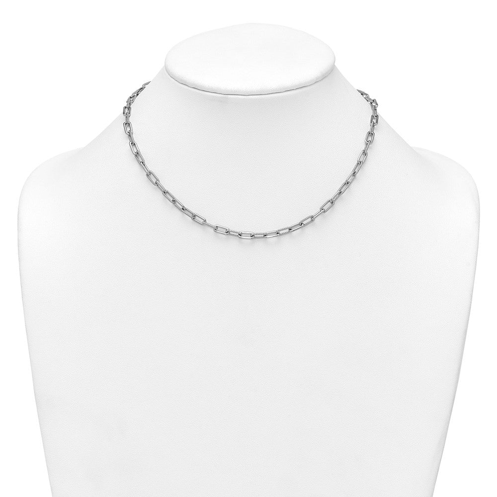 Sterling Silver Rhodium-plated Polished and Twisted Paperclip Link 16 Inch with 2 Inch Extension Necklace