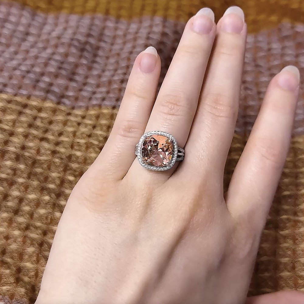 Specifications: Material: Primary - Purity:925|Finish:Polished|Stone Type_1:Crystal|Stone Type_2:Cubic Zirconia (CZ)|Stone Color_1:Pink|Stone Color_2:White|Stone Quantity_1:1|Stone Quantity_2:105|Plating:Rhodium|Band Width:3 to 8.15 mm (tapered)|Stone Setting_1:4 Prong|Head Height:9.35 mm|Material: Primary:Sterling Silver|Completeness:Complete (all stones included)|Sizeable:No|Stone Shape_1:Cushion|Stone Shape_2:Round|Stone Treatment_2:Synthetic|Width of Item:14.8 mm|Engravable:Not Recommended|Product Type:Jewelry|Jewelry Type:Rings|Sold By Unit:Each|Gender:Women's|Head Type:Cushion (4 Prong)|Material: Primary - Color:White|Ring Type:Rings with Stones|Ring Top Length:14.8 mm|Ring Top Width:15.35 mm|Plating Color:Silver Tone|Stone Creation Method_1:Synthetic|Stone Creation Method_2:Synthetic