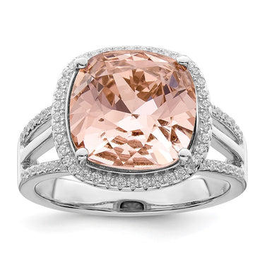 Sterling Silver Rhodium-plated Polished CZ & Peach Crystal Ring