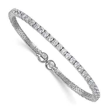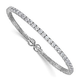 Specifications: Material: Primary - Purity:925|Finish:Polished|Stone Type_1:Cubic Zirconia (CZ)|Stone Color_1:White|Plating:Rhodium|Clasp /Connector:Slip On (No Clasp)|Feature:Flexible|Material: Primary:Sterling Silver|Stone Shape_1:Round|Stone Treatment_1:Synthetic|Width of Item:3.2 mm|Product Type:Jewelry|Jewelry Type:Bracelets|Sold By Unit:Each|Bracelet Type:Cuff|Gender:Women's|Material: Primary - Color:White|Plating Color:Silver Tone|Stone Creation Method_1:Synthetic