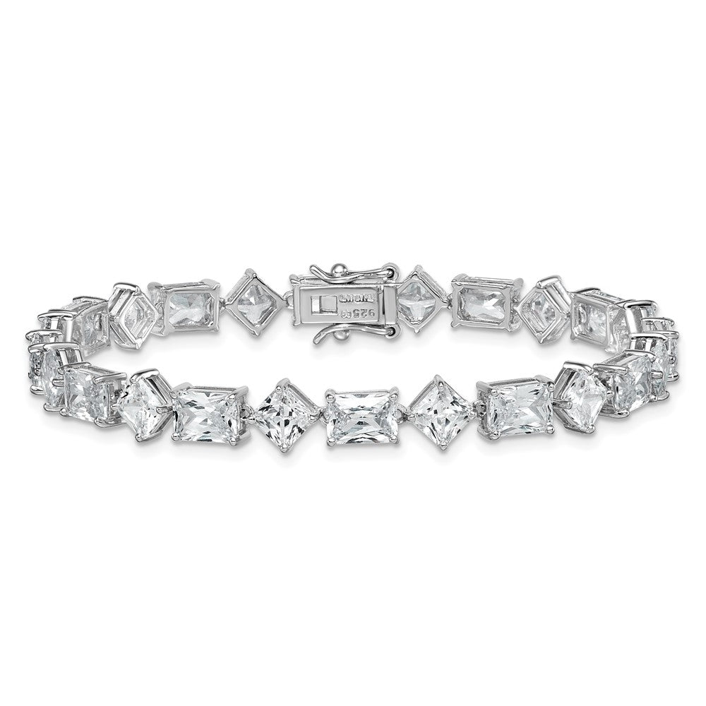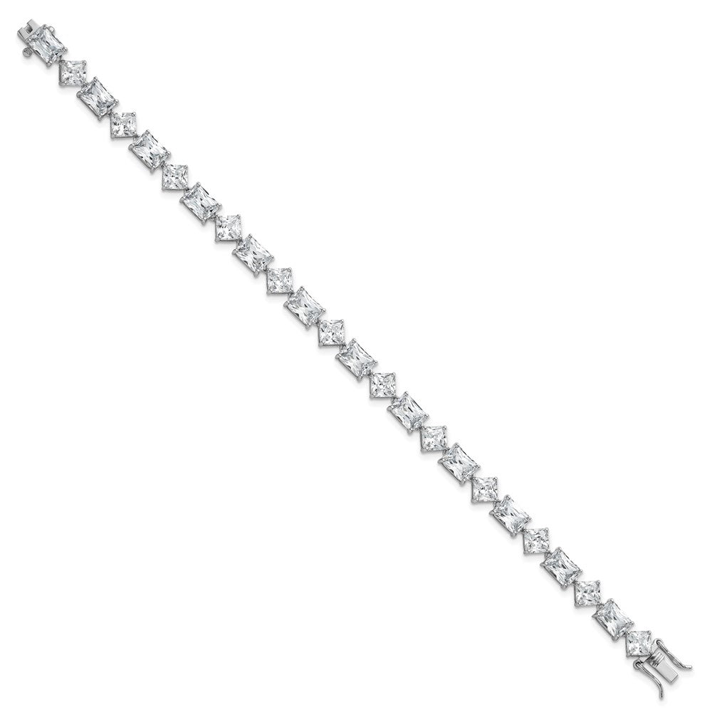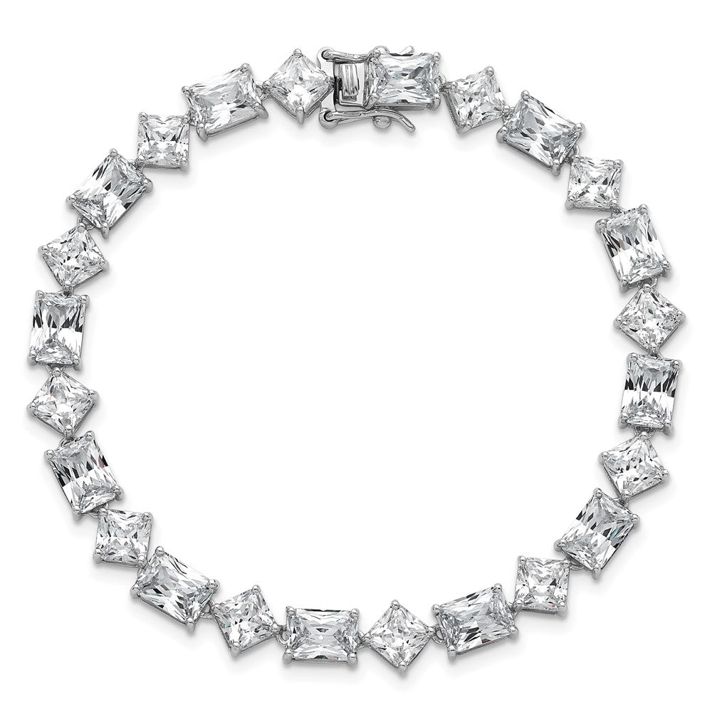 Sterling Silver Rhodium-plated Polished Fancy Princess and Emerald-cut CZ 7.25 Inch Bracelet
