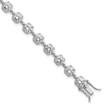 Sterling Silver Rhodium-plated Polished Round CZ in Hexagon Setting 8 Inch Bracelet