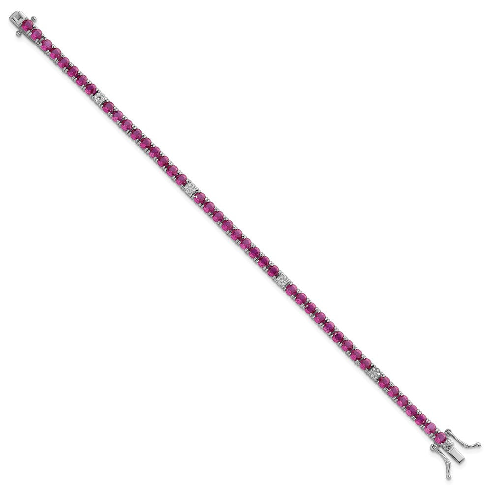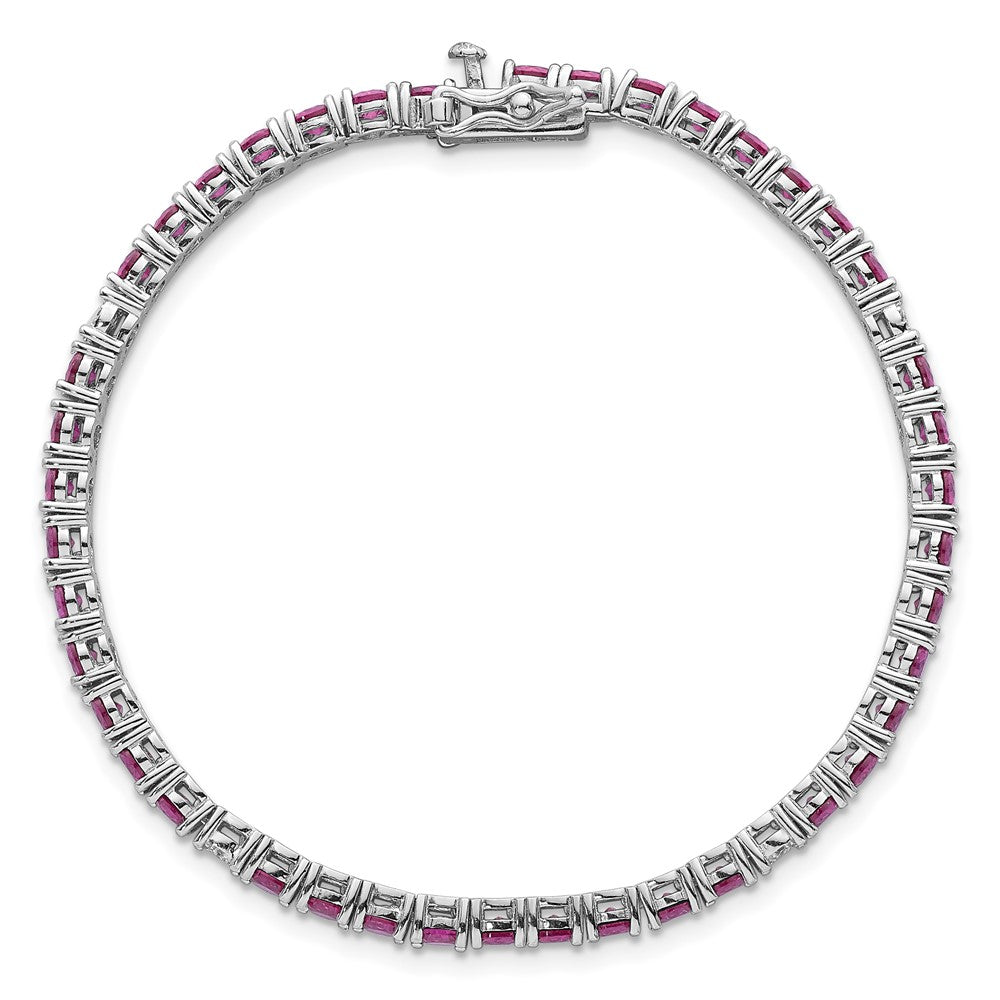 Specifications: Material: Primary - Purity:925|Finish:Polished|Stone Type_1:Cubic Zirconia (CZ)|Stone Type_2:Cubic Zirconia (CZ)|Stone Color_1:Red|Stone Color_2:White|Length of Item:7 in|Plating:Rhodium|Chain Length:7 in|Chain Type:Fancy|Chain Width:3.68 mm|Clasp /Connector:Hidden Catch|Feature:Flexible|Material: Primary:Sterling Silver|Completeness:Complete (all stones included)|Stone Treatment_1:Synthetic|Stone Treatment_2:Synthetic|Width of Item:3.68 mm|Product Type:Jewelry|Jewelry Type:Bracelets|Sold By Unit:Each|Bracelet Type:CZ Bracelets|Gender:Women's|Material: Primary - Color:White|Feature 2:Open Back|Plating Color:Silver Tone|Stone Creation Method_1:Synthetic|Stone Creation Method_2:Synthetic