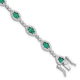 Sterling Silver Rhodium-plated White and Green CZ Link Bracelet