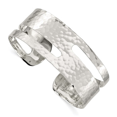 Sterling Silver Solid Polished Hammered Fancy Cuff Bangle Bracelet