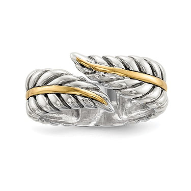 Sterling Silver w/14k Antiqued Leaves Bypass Ring