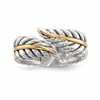 Specifications: Material: Primary - Purity:925|Finish:Polished & Antiqued|Material: Accents:14K Gold|Material: Accent Color 1:Yellow|Band Width:7 mm|Feature:Solid|Manufacturing Process:Casted|Material: Primary:Sterling Silver|Sizeable:No|Thickness:< 2 mm|Item Weight U/M:gm|Product Type:Jewelry|Jewelry Type:Rings|Sold By Unit:Each|Profile Type:Closed Back|Material: Primary - Color:White|Ring Type:Themed|Ring Shape:Round